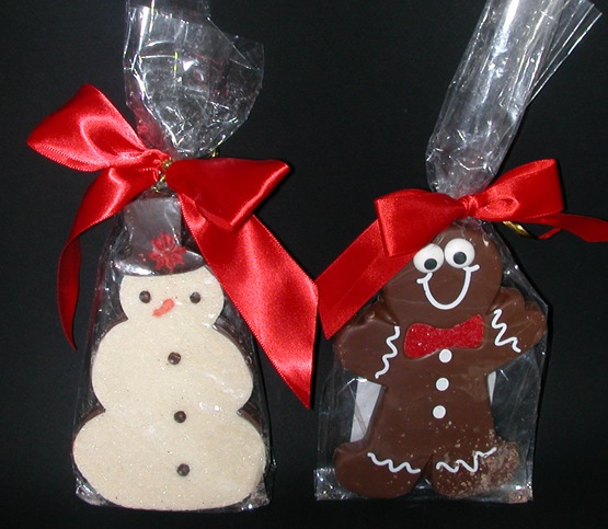 Snowman and Gingerbread on black emailable